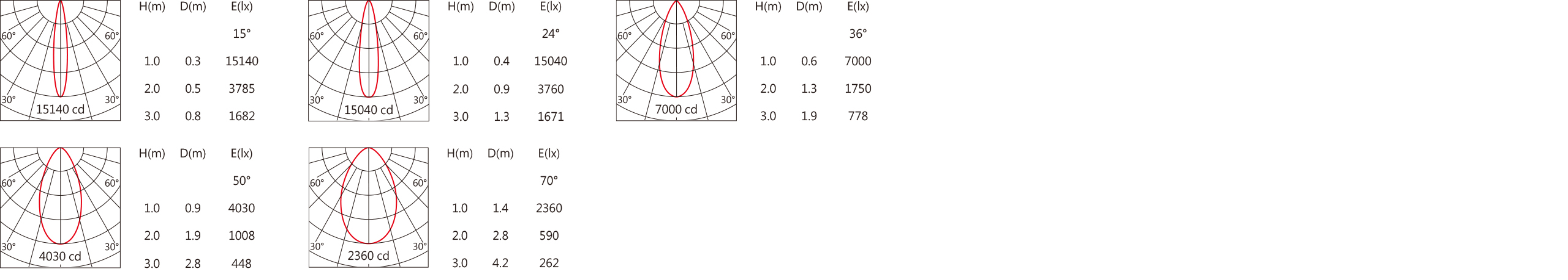 | 角度 (Angle) | 15°、24°、36°、50°、70° | ||