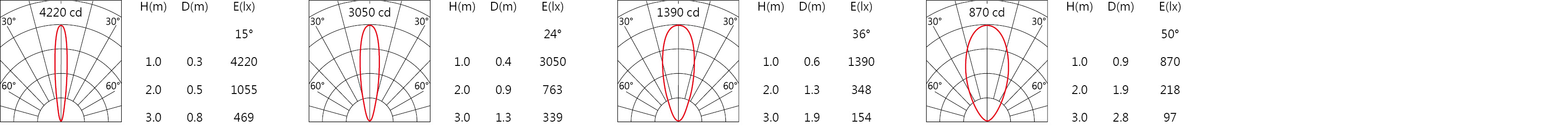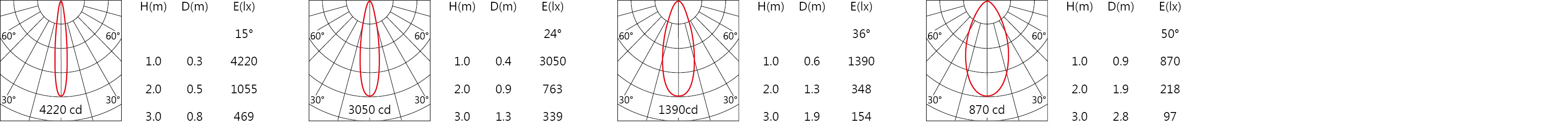 | 角度 (Angle) | 15°、24°、36°、50° | ||